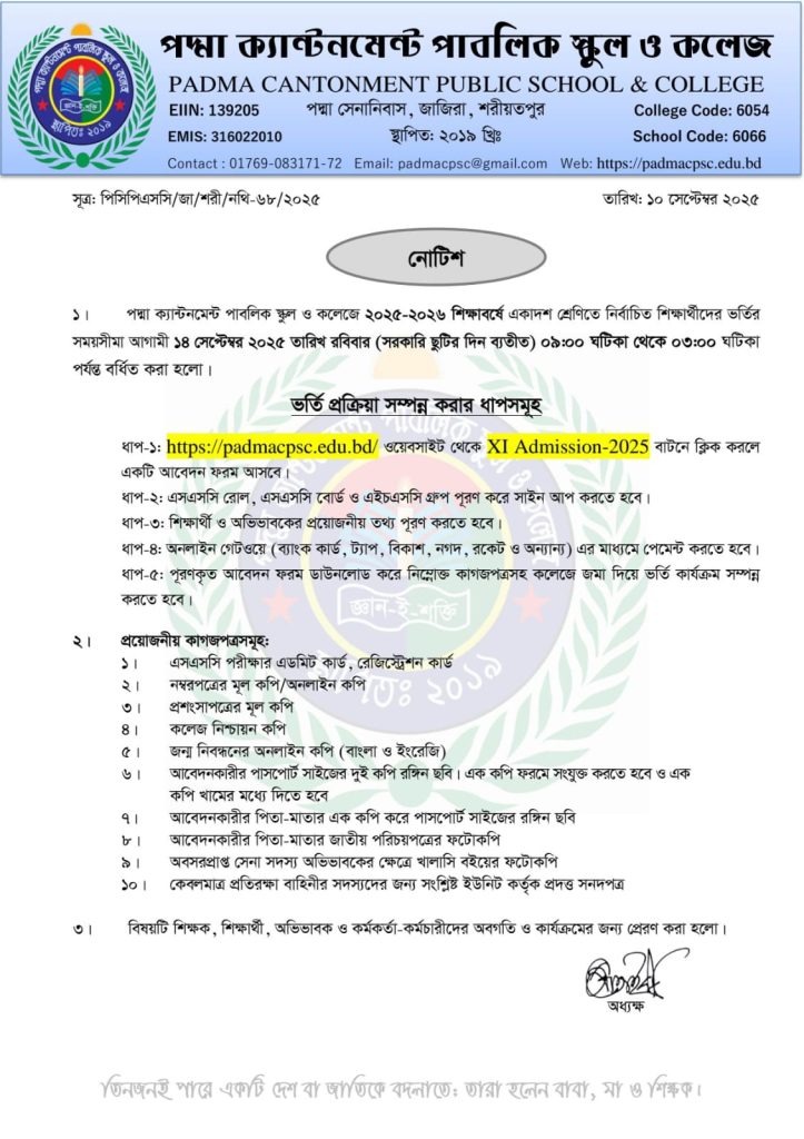 একাদশ শ্রেণিতে নির্বাচিত শিক্ষার্থীদের ভর্তির সময়সীমা বর্ধিতকরণ প্রসঙ্গে।
