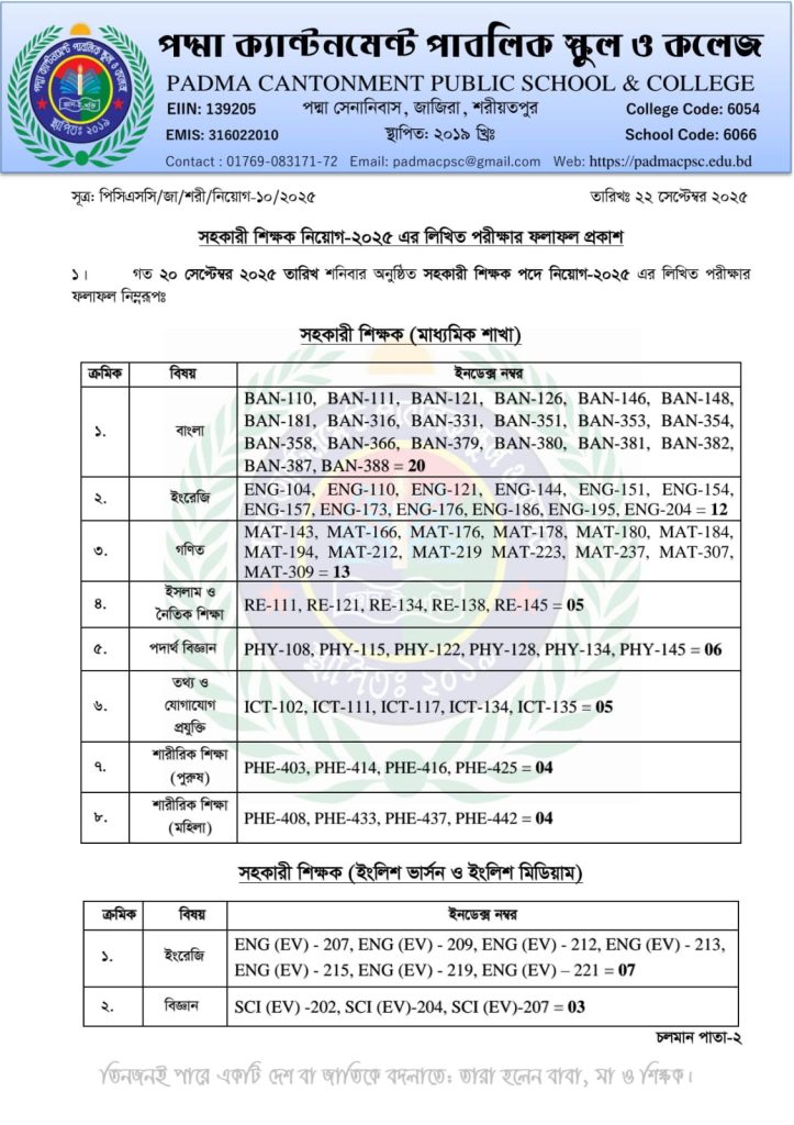 সহকারী শিক্ষক নিয়োগ – ২০২৫ এর লিখিত পরীক্ষার ফলাফল প্রকাশঃ September 22, 2025September 22, 2025 PCPSC